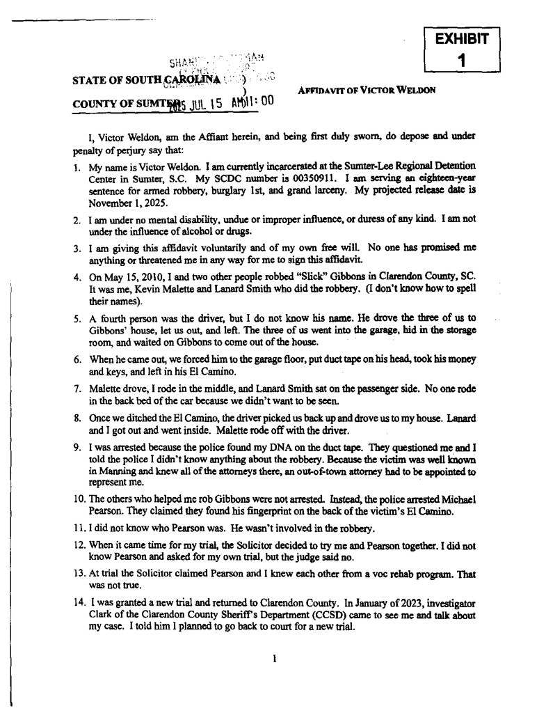 In February 2022, Weldon stood before a Clarendon County judge and pleaded guilty to charges connected to the 2010 home invasion. But in doing so, he offered a stunning confession — one that fundamentally upended the case against Pearson.