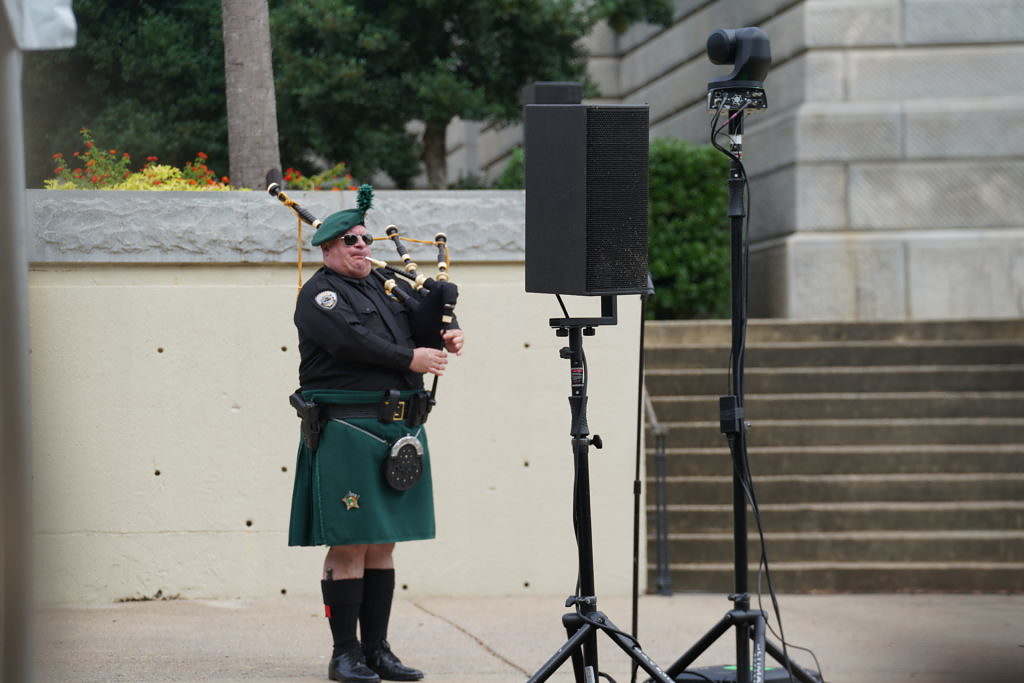 After North Charleston Police sergeant James F. Ryan III played Amazing Grace on the bagpipe, the Silent Witness Ceremony ended as it began — in silence — broken only by the rustle of paper programs in the warm autumn breeze.