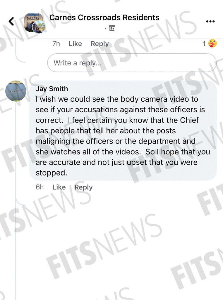 In one of the account’s more incriminating moments, “Jay Smith” confronted a resident in the comments of a private group post criticizing GCPD. “I wish we could see the body camera video to see if your accusations against these officers is [sic] correct,” the alias wrote.