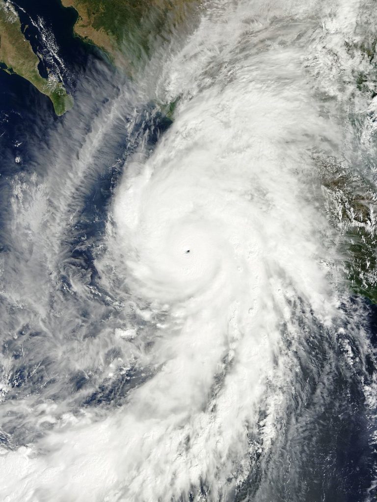 By the way, a “sustained wind” is a wind speed that is measured at a specific level for a duration of at least one minute. Pacific cyclone Hurricane Patricia (above) currently holds the record for highest sustained winds ever recorded – 215 miles per hour – although this 2015 storm weakened to a strong category four storm by the time it made landfall in Jalisco, Mexico.