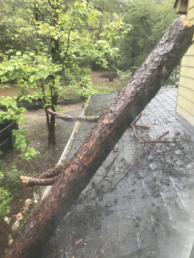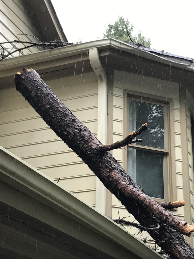 My wife (who is five months pregnant) and all five of our children were inside the home at the time the tree came down. Amazingly, no one was hurt …
