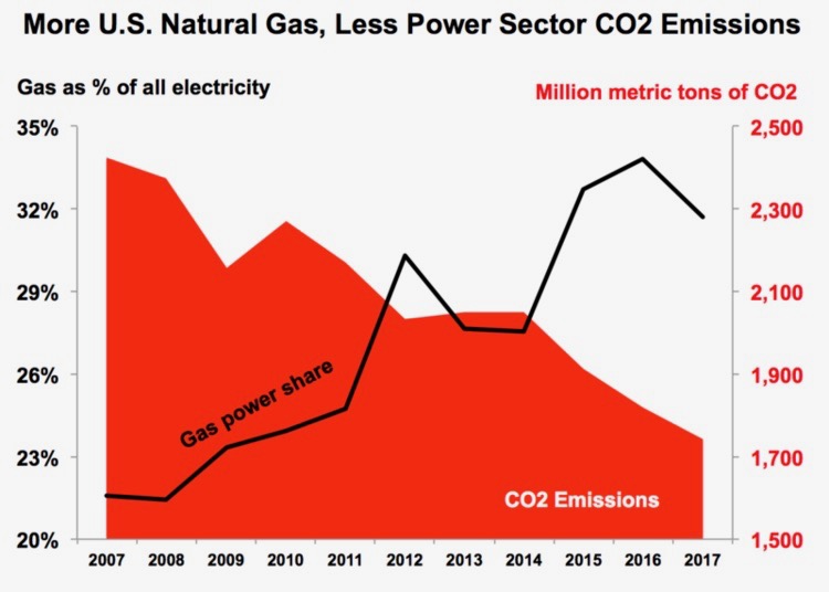 Obviously the expansion of renewables has reduced reliance on “dirty” energy sources – like coal. But the real hero of the American energy revolution of the last decade – the real reason there are fewer coal-burning plants – has been natural gas, which now accounts for 33 percent of America’s power generation.