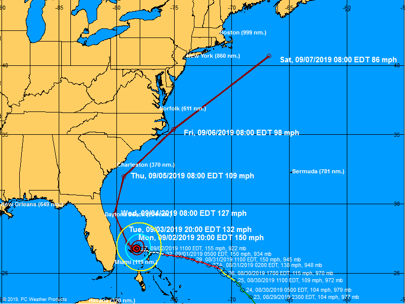 And while “gradual weakening is forecast” over the next 24 hours, analysts expect Dorian “to remain a powerful hurricane during the next couple of days.”
