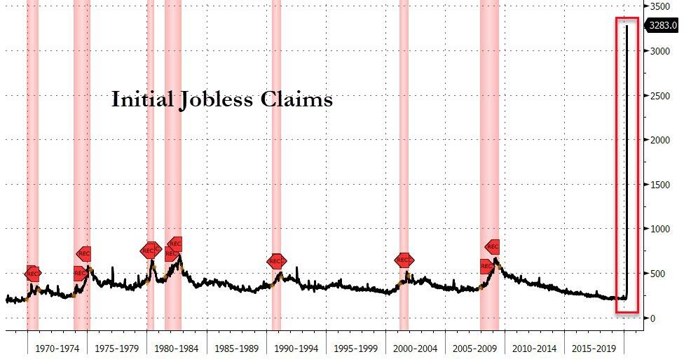 The figure was also nearly five times higher than the previous record for initial claims (695,000) – which was set in October of 1982.