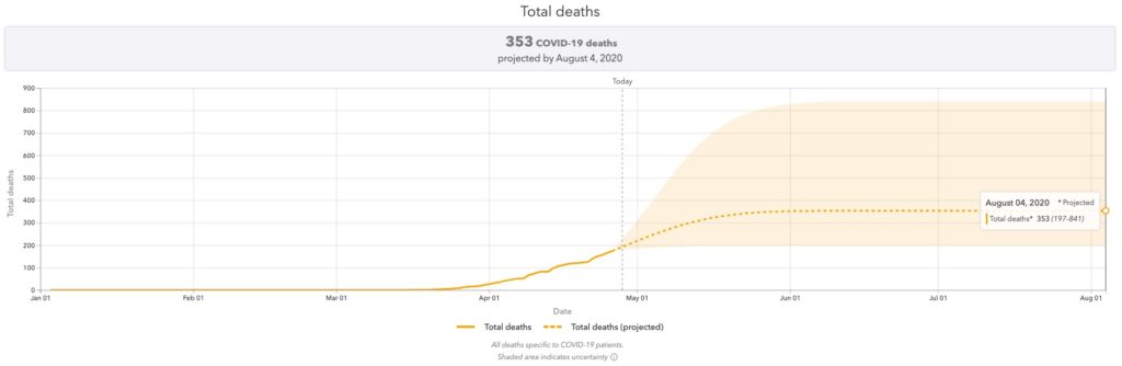 The latest data from the institute suggests 353 South Carolinians will die from the virus – although the upper end of its modeling calls for as many as 841 deaths.