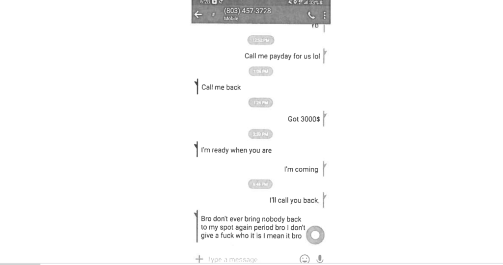 They also used confidential informants in the investigation and collected text messages like this one as a part of the investigation: