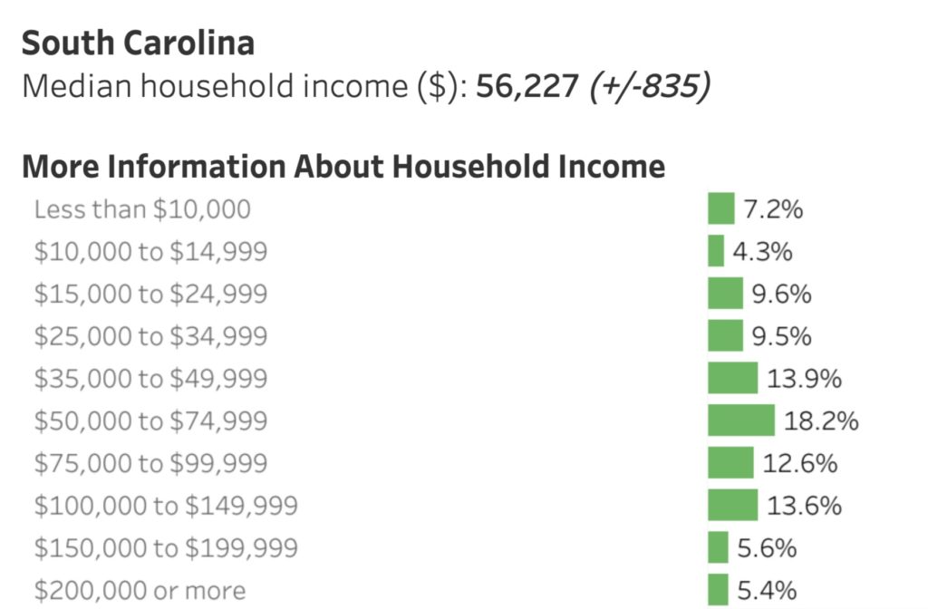 Finally, 24.6 percent of South Carolina households saw incomes higher than $100,000 in 2019 – up from 21.4 percent the year before.
