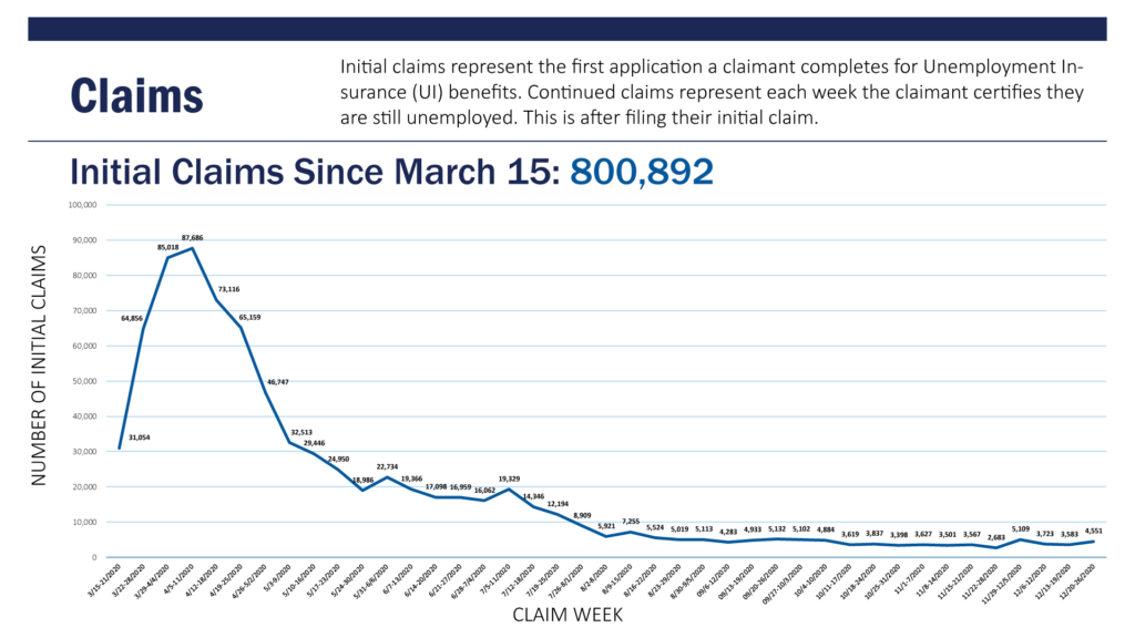From December 20-26, 2020, a total of 4,551 South Carolinians filed claims – up 27 percent from the previous week (and the second-highest number of new claims in the last eleven weeks).