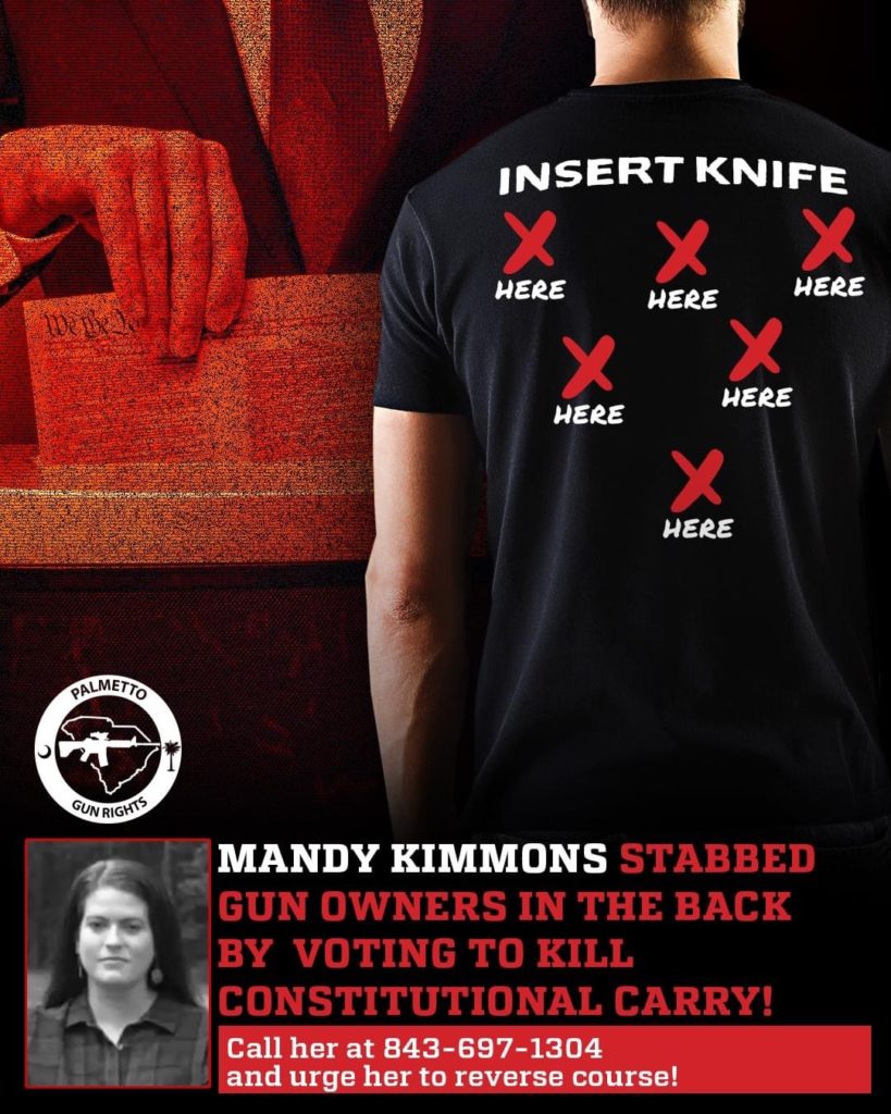 This week, though, the drama ratcheted up to a higher energy level when a pro-Second Amendment group called Palmetto Gun Rights (PGR) sent mailings into multiple S.C. House districts accusing lawmakers of stabbing gun owners in the back by voting to “kill constitutional carry.”