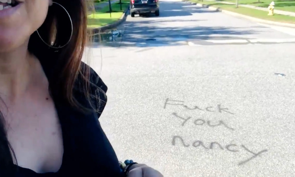 The as-yet-unidentified vandals used black spray paint to deliver several profane messages to Mace – defacing her home, front steps, sidewalk and the street in front of her house.