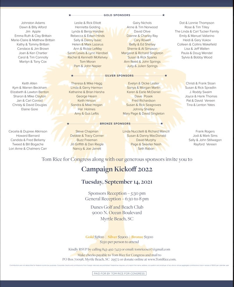 Will Haley back Rice in 2022? That remains to be seen, but the incumbent congressman rolled out a list of his financial supporters on Wednesday afternoon …