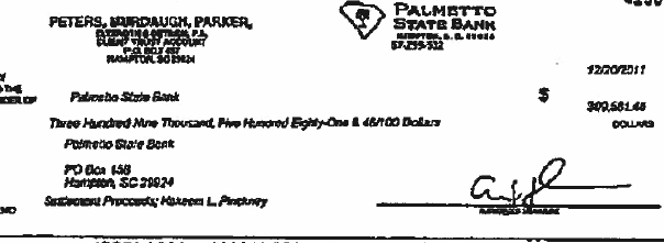 Bamberg also saw a huge red flag when he found a $309,581 check written directly to Palmetto State Bank.