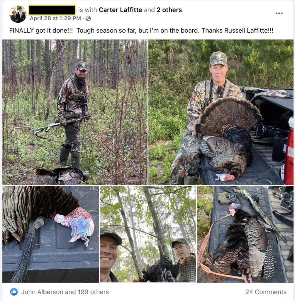 Bamberg also noted that days ago, Laffitte was out turkey hunting.