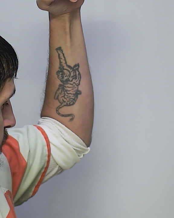 Burham stands 5-foot-10 and weighs approximately 160 pounds. He has brown hair and brown eyes. He has a pair of tiger tattoos – one on his right bicep and another on the inside of his left forearm. He was last seen wearing a prison-issued blue denim jacket, an orange-and-white-striped prison jumpsuit and jail-issued orange crocs.