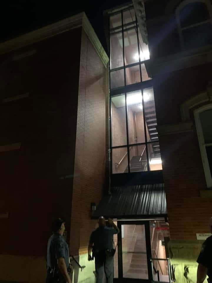 “The defendant slid down the rope, land(ed) on the portico, and jumped from the portico to the ground,” officials stated. “He then took off on foot.”