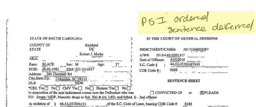 After more than four years of delays in bringing Marks’ case to trial – thanks to Rutherford’s “legislative immunity” – a trial was finally held in December 2020. During those proceedings, though, S.C. fifth circuit solicitor Byron Gipson suddenly agreed to drop all of the charges against Marks if he pleaded guilty to a lesser sentence of possession with intent to distribute.