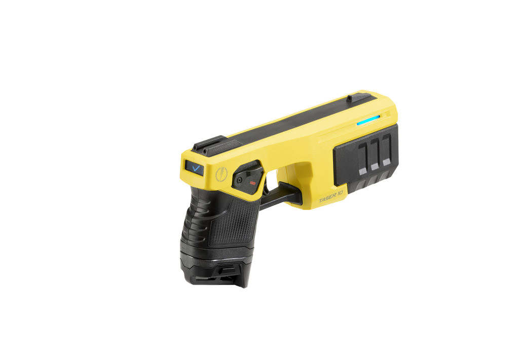 The banana-colored weapon is furnished with tactical lighting, visible lasers, open sights and reloadable magazines emblematic of a traditional handgun. If drawn from its holster, nearby body cameras provided by the same manufacturer are activated — whether the futuristic device is fired or not.