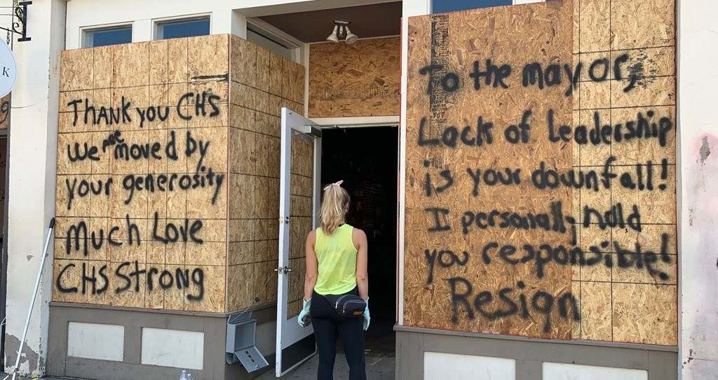 “We sat for three-plus hours with no assistance to protect our businesses,” he wrote. “We watched them slowly and methodically smash and steal every single item out of (our) neighbors place while the police never came. Three-plus hours of chaos.”