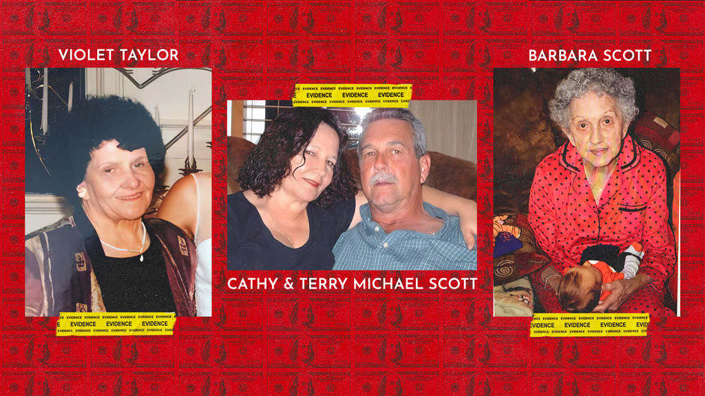 The couple — married one week before the massacre — stand accused of murdering Amy’s 60-year-old mother, Cathy Scott, 58-year-old stepfather, Terry Michael Scott, 82-year-old grandmother, Violet Taylor, and 80-year-old step-grandmother Barbara Scott.