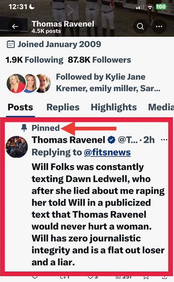 “Will has zero journalistic integrity and is a flat out loser and a liar,” Ravenel wrote.