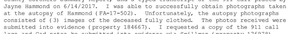 The BCSO report stated there were only three photos available from the autopsy – and none of them show the head injury.