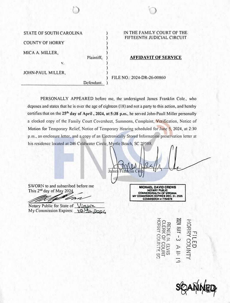 I noticed the Affidavit of Service above was signed by process server James Franklin Cole and then signed and notarized by Michael David Crews, Notary Public for the Commonwealth of Virginia. Notary Crews dated his signature May 2, 2024. The document was then “clocked” at the Horry County Courthouse May 3, 2024. According to Virginia Notary Laws, both the signee and the notary must be physically together in Virginia at a document’s signing if the document will be filed outside Virginia (barring online notarization which requires additional language and paperwork). Because the Affidavit of Service was filed in SC Family Court, in order to be a valid document, the notary and process server had to physically be together in Virginia on Thursday, May 2, 2024, and then someone had to drive (or fly) to Horry County to clock the Affidavit by 11:19am on Friday morning, May 3, 2024 (note: Horry County Clerk of Court only accepts “wet” signatures on official documents – no e-filing or photo copies in Family Court). Attorney Regina Ward often uses her son as a process server. Who is James Franklin Cole? I don’t see anything online. Why would Cole take the document to Virginia before filing? Why the sudden rush to file a document based on service that supposedly occurred a week earlier? Unless the paperwork was physically transported from Virginia to South Carolina between May 2nd and 3rd, this document is not legally valid and could easily be challenged in court… just like the entire action could be challenged based on improper jurisdiction. Why is Mica’s sister stuck in Domestic Relations Court? This manner of “pre-planned failure” is a tactic colluding attorneys use to drain assets on both sides, to rack up fees on both sides, and then make sure a case is dismissed or there is a summary judgment without a trial. More money, less work for attorneys. Regina Ward specifically has done this previously.
