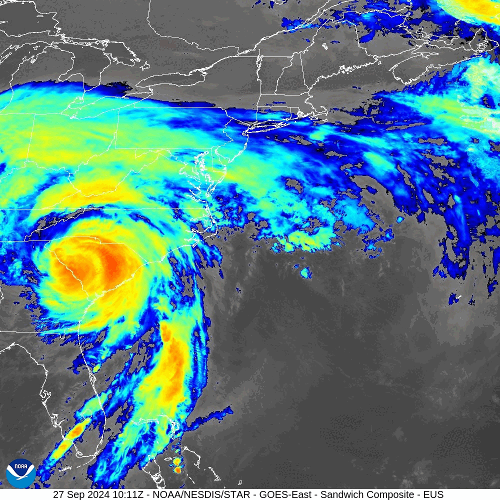11:30 a.m. EDT – A summary of the latest information on Helene has just been released by the National Hurricane Center (NHC) in Miami, Florida. As of 11:00 a.m. EDT, Helene – now a tropical storm – was located at latitude 35.1° N longitude 83.8° W, or 105 miles north-northwest of Atlanta, Georgia.