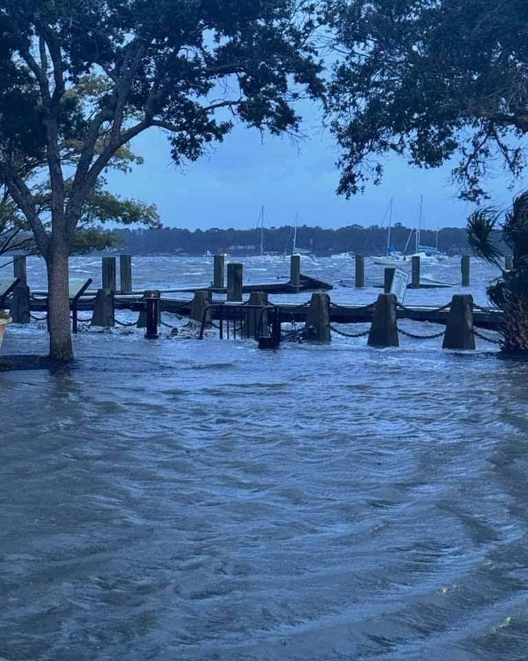 9:03 a.m. EDT – Explore Beaufort, a local tourism group in Beaufort, S.C. just posted this image of flooding from the South Carolina Lowcountry…